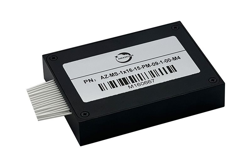MEMS 1xN PM optical switch module (1×2 to 1×16) is a non-latching optical switch based on Micro-Electro-Mechanical System (MEMS) technology. The optical switch module allows channel selection between a single input fiber and N output fibers. By rotating the MEMS mirror of the PM optical switch, the path of the optical signal can be controlled and switched to accommodate connection requests while simultaneously maintaining the polarization state of the signal.